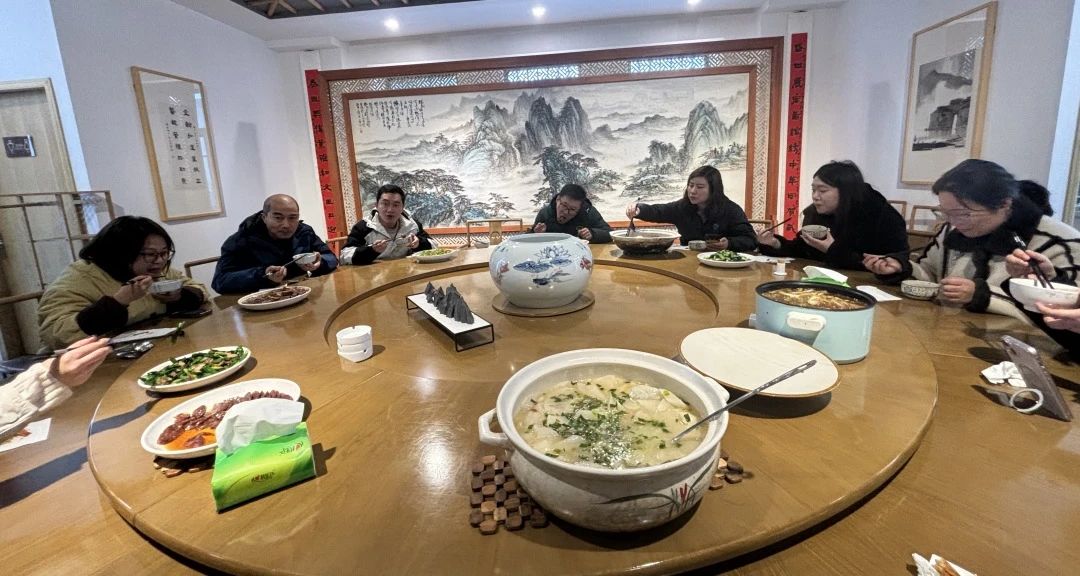 午餐时间,餐厅里人头攒动,大家怀揣着期待接过一碗碗腊八粥。浓稠的粥液闪烁着诱人光泽,入口软糯香甜,暖彻心扉。员工们纷纷表示:“平常忙起来都顾不上过节,今天这一碗腊八粥,一下子就有了浓浓的年味,感觉像在家里一样。” 除了腊八粥,大厨还精心烧制了一道道拿手好菜。红烧肉肥瘦相间,色泽红亮;搭配公司开心农场的时蔬,鲜嫩爽口,满是自然的气息。