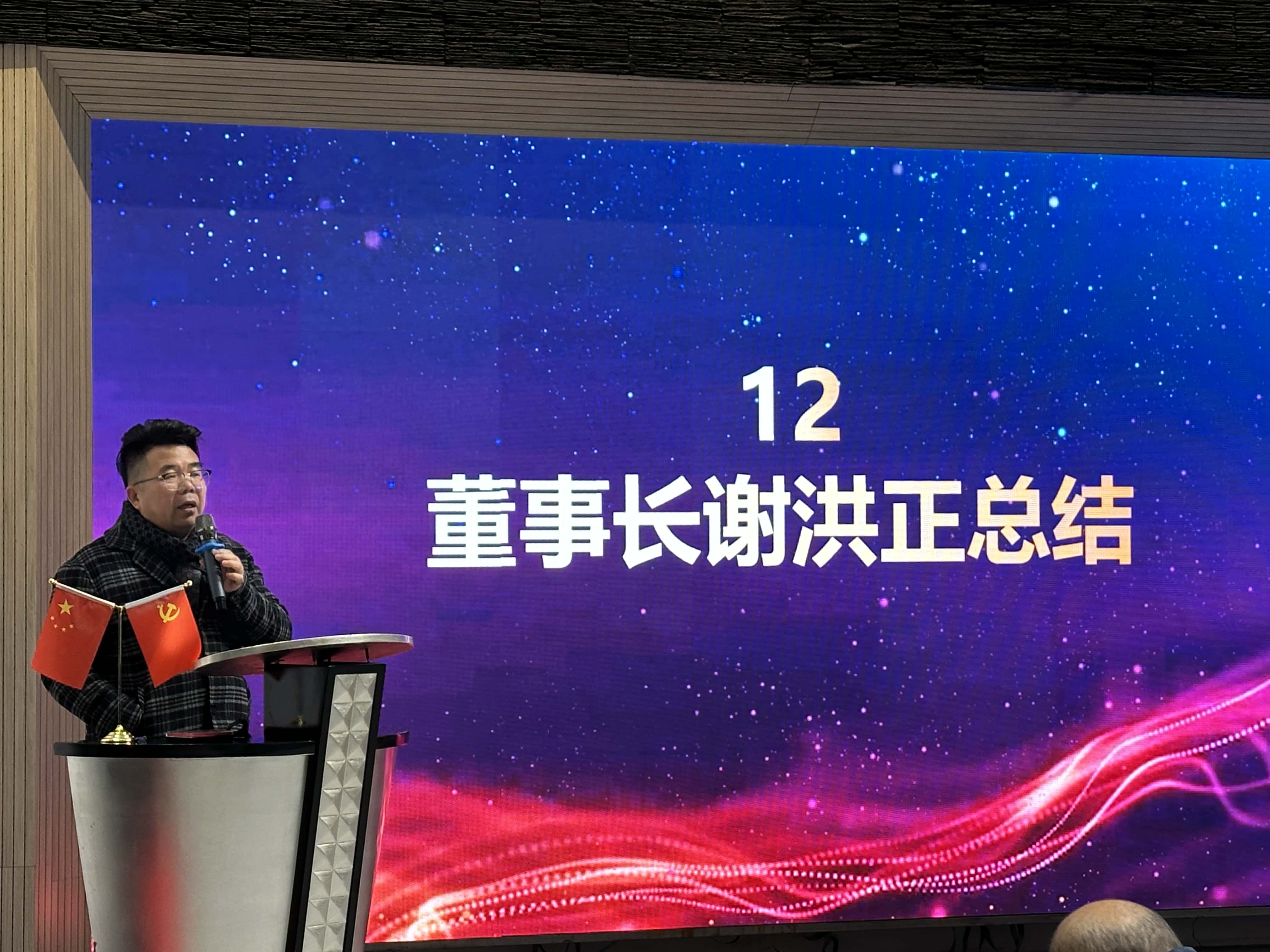 大会最后,董事长谢洪正进行了总结发言。他强调,2025 年公司要加强人才培养,通过多样化的培训提升员工的专业技能和综合素质。同时,公司将在活动方面力求创新,每个月都要举办具有特色的活动,丰富员工业余生活,增强团队凝聚力。此外,公司还将严格落实管理办法,进一步明确各部门职责,优化工作流程,加强监督考核,确保各项制度得到有效执行,提升公司的管理效率和运营水平,推动公司在新的一年里稳健前行。
