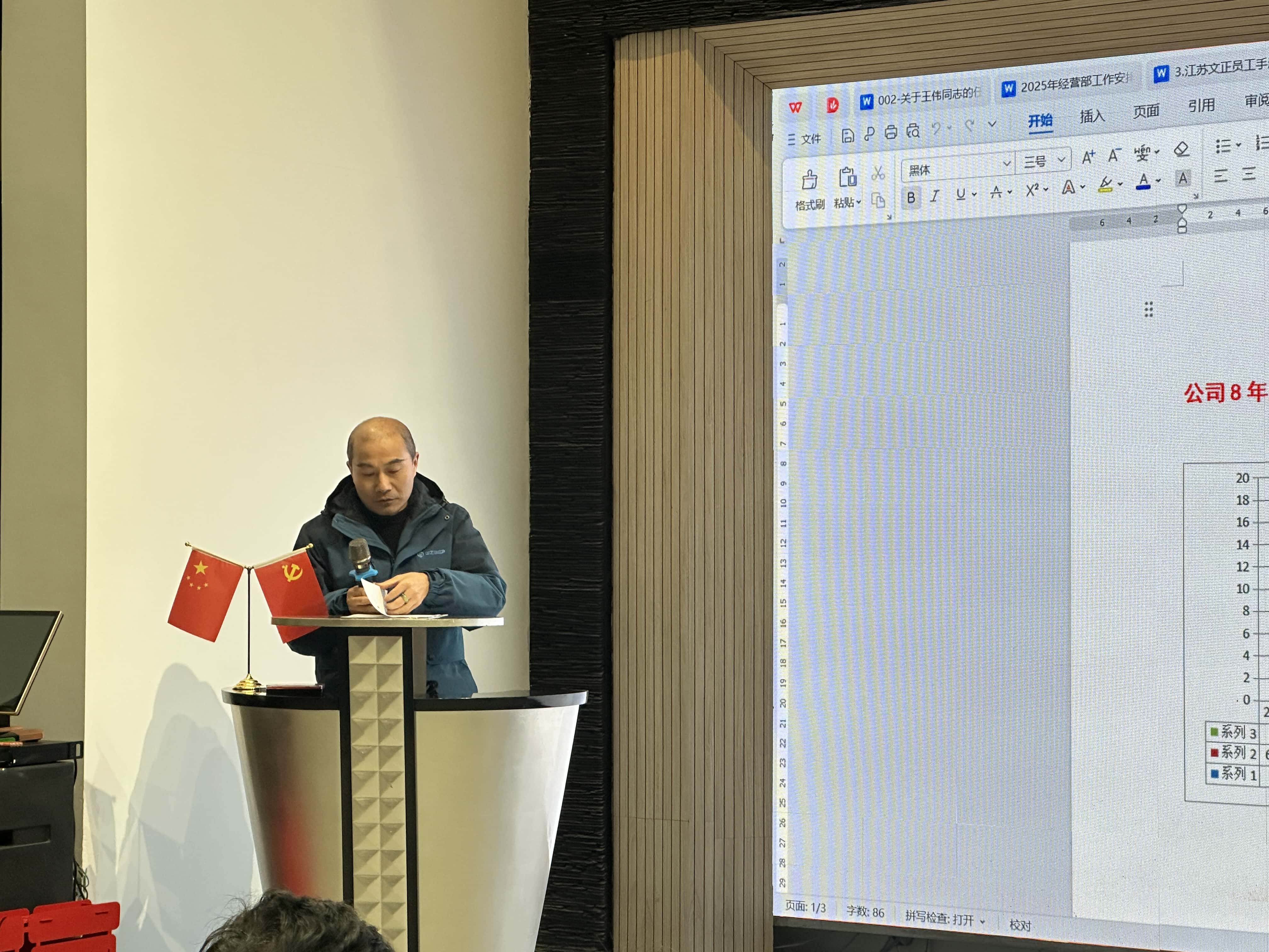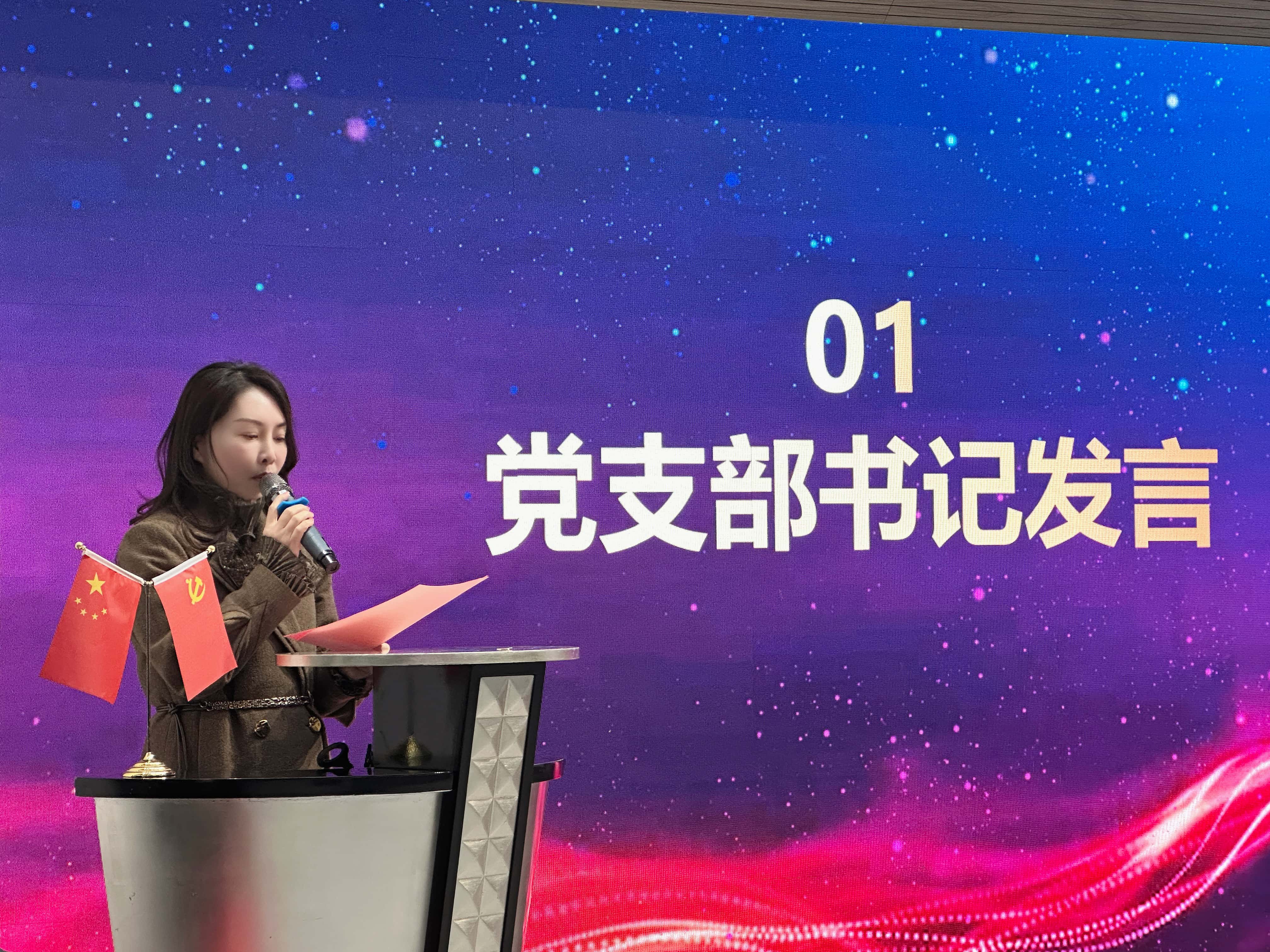 大会伊始,公司党支部书记朱丽文率先发言,对 2024 年度工作进行了全面且深入的总结报告。